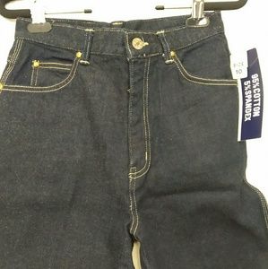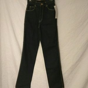 80s true vintage high waisted dark navy blue jeans, still with tags. Deadstock.