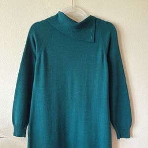 Rare 80’s Vintage Abercrombie & Fitch Emerald Green Fold Over Turtle Neck Midi Dress. Size Medium. Gently worn, good condition.