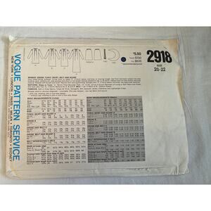 80s Vogue 2918 Sewing Pattern Vintage Dress Size 20 22