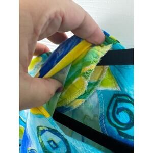 80s WNY Blue Yellow Colorful Short Sleeve Batik Print Dress Size 4/6 Small Rayon