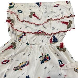 Chic and playful white jumpsuit with a nautical print. Perfect for casual outings and summer days. This vibe is totally 80’s boating and beach attire. Size Large. Excellent used condition. Everyone is going to compliment this outfit.