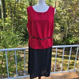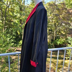 80s Wmns Perceptions Red Black Check Vtg Midi Dress Blazer Suit Set Outfit 14W