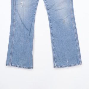 Vintage 80s Wrangler Mens 33x31 Distressed Faded Bootcut Denim Jeans Blue USA