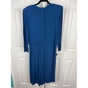 80s does 40s Karin Stevens Blue LS Embroided Beaded Secretary Geek Dress Size 12
