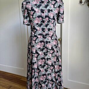 80s floral dress with lace collar and pockets! Super cute retro piece. Soft rayon and cotton blend. Some minor wear, darker spot on collar near neck (see photos). Buttons and zips up the back. Brand Lisa II. Tag says size 16 but see measurements for more accurate sizing.
