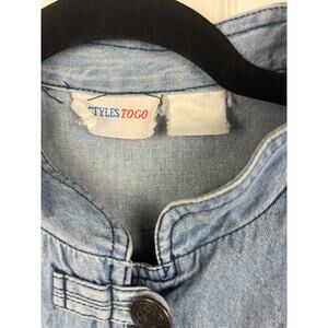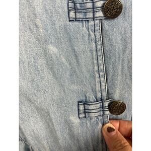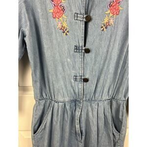 80s long sleeve denim jean embroidered boho romper one piece Large Boho