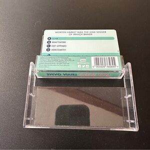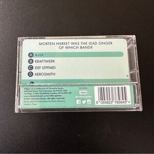 After a bit of 80s nostalgia? Look no further than this totally righteous 80s Music Trivia Game from Ridley's Games! Relive the decade that brought us shoulder pads, mullets and boom boxes with 40 cards featuring music trivia and next line challenges! Divide into two teams and take it in turns to ask the opposing team a question, but the show isn't over yet! Select a player to sing the line of the song listed on the card to their team, who must then correctly sing back the next line of the song to earn another point! Comes packaged in a fun retro plastic cassette tape style case that also serves as a handy stand.