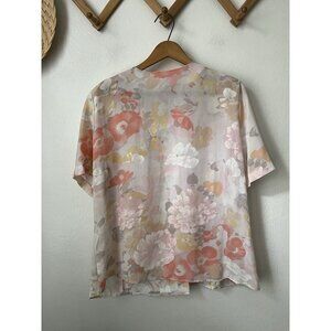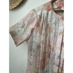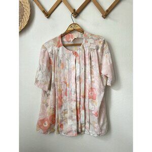 80s pastel floral pleat front short sleeve button blouse polyester L