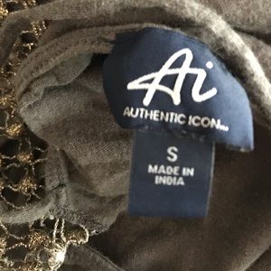 Oversized!! Can fit up to a size large! Very cute army green vintage style T-shirt with an 80s vibe graphic. The sleeves have a gold mesh-like detailing. Comfortable, breathable, and perfect for this warm summer!