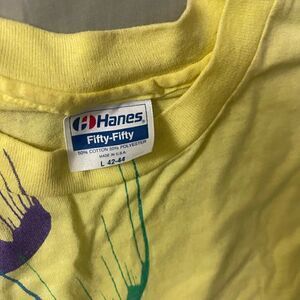 80s vintage custom canary yellow Hanes Fifty-Fifty tee shirt with splash print