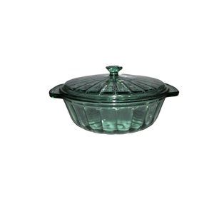 80s-90s, Round Casserole w/Lid, Green Anchor Hocking, Excellent, 2 Q