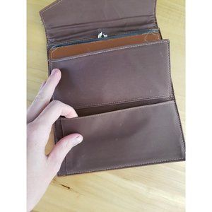 This wallet has a checkbook slot and a coin section but not separate holders for cards.