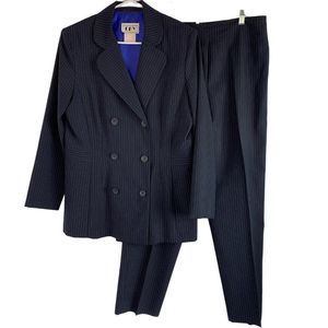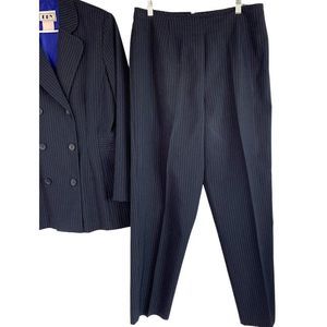 80s DBY ltd Womens VTG Navy Pin Stripe Pant Suit Sz 13/14 Double Breast 6275
