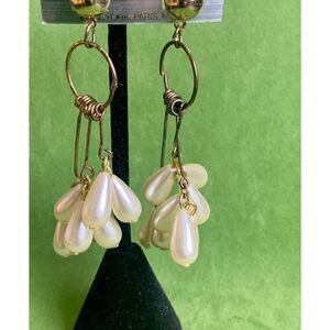 80s Faux Pearl deflected pierced drop earrings, in Gold