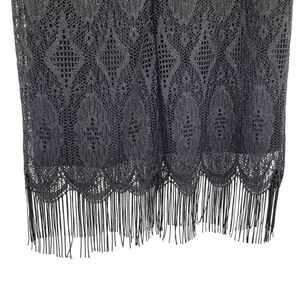 80s Necessary Objects Flapper Dress S Black Midi Lace Overlay Scallop Fringe Hem