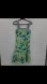 Boho limeade pastel green vibrant tropical leaf print cotton sleeveless adjustable strap smocking elastic back ruffle drop waist vintage 80's prairie apron dress by R&K Originals.