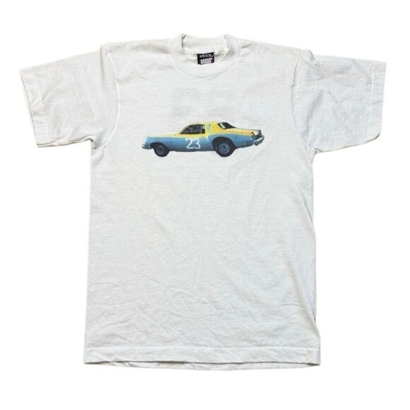 80s Vintage Screen Stars NASCAR Monte Carlo White Graphic Tshirt Medium