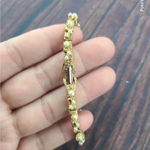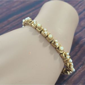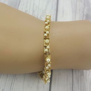 80's Vintage Gold Tone Faux Pearl Cluster Bracelet Length 7 1/2".