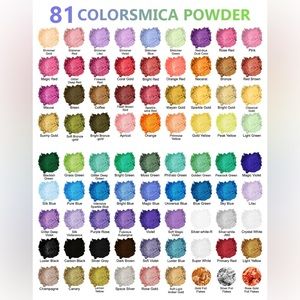 ⭐81 spectacularly vibrant and beautiful colors! each bottle is 10g/0.35oz.Just a little mica powder can bring a very gorgeous effect.With its shiny surface,this mica powder pigment provides a gorgeous and lasting effect for your artistic creation.