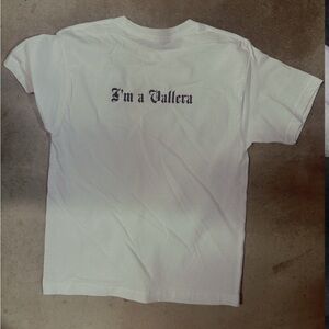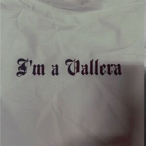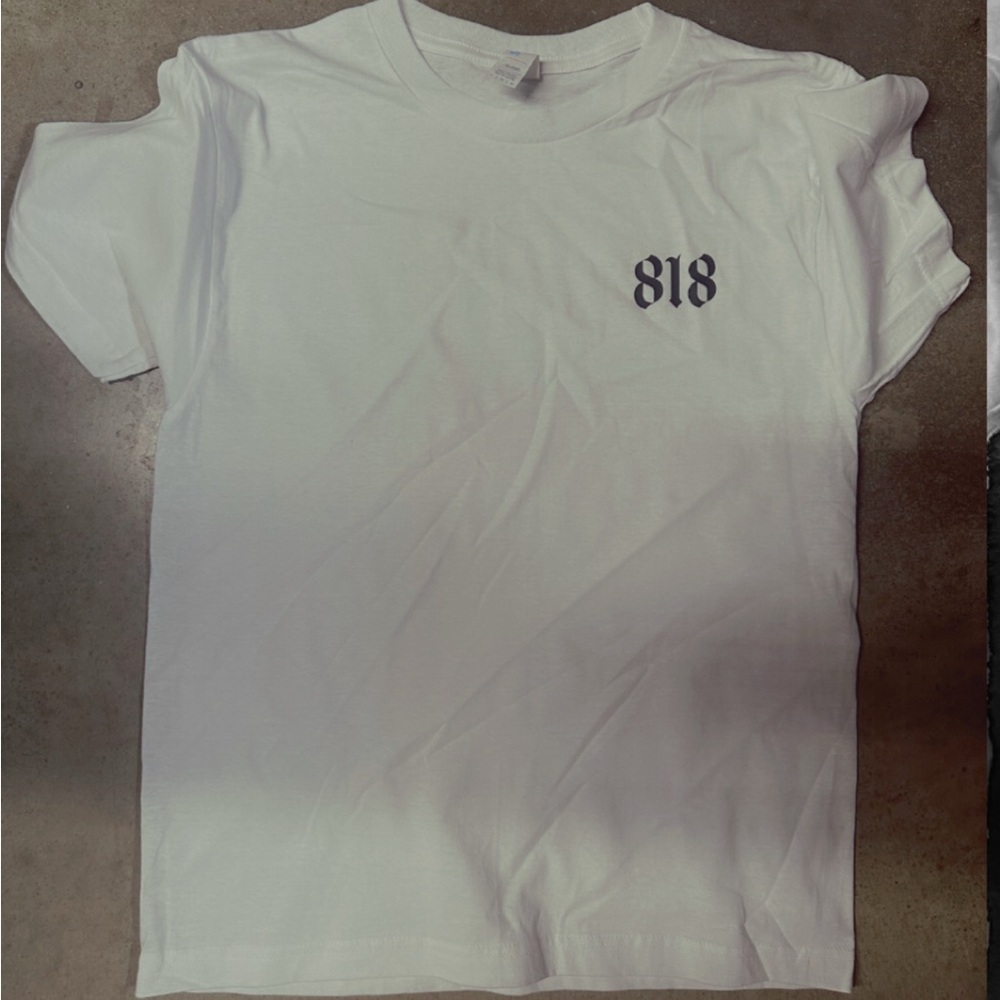 White t-shirt featuring a bold 818 logo on the front and a bold I’m a Vallera on the back. Simple and stylish.