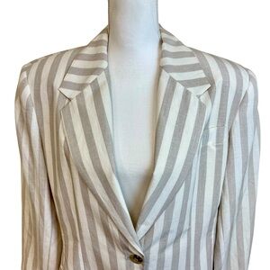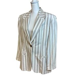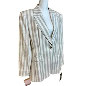 81st & Park Linen Ivory Tan Striped Women's Blazer Sz L New Office Casual Work