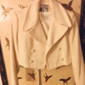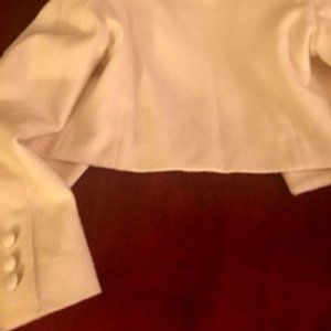Vintage 81st and Park Wool Ivory Bolero Jacket in a size P (petite) (not noted however am a size 2 and it fits me perfectly) purchased late 80's early 90's from Phipps Plaza Atlanta GA Retailer Gorge wool covered button detail style iconic 80's fashion collar lined designer bolero. Condition: good vintage no stains however garment has some pulling on right inner sleeve and 3 small moth bites upper back (see pics) if hair is long non-issue. Price reflects described condition stored smoke free.