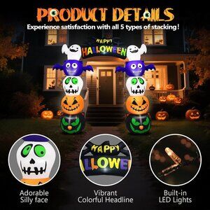 * 8.2ft Tall Stacked Heads Archway - Massive inflatable entryway featuring stacked ghost, skeleton, demon, pumpkin, and cat heads creates a dramatic Halloween portal for yards, gardens, or indoor spaces.