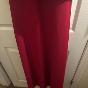 This is a beautiful David’s bridal halter neck, red long dress. It has a satin material at the top and I should find at the bottom. Beautiful Christmas party dress or wedding for a formal wedding dress or bridesmaids dress very pretty.