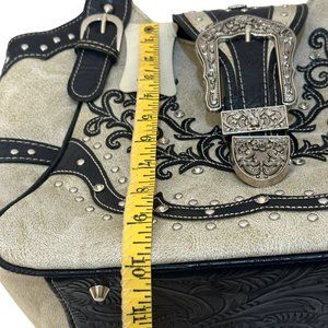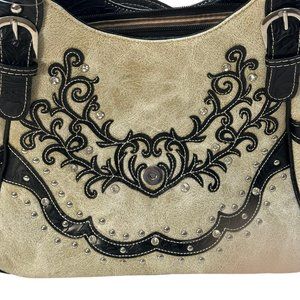 (8-210) Brand New w/Tag Beige Leather-Like Western Shoulder Handbag