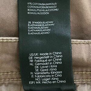 Men's jeans in nutmeg color. Tagged 31x32, measures more like 32 waist and 30.5 inseam. Leg opening is roughly14 inches. Claims to be straight leg but there's a slight taper from knee to ankle.