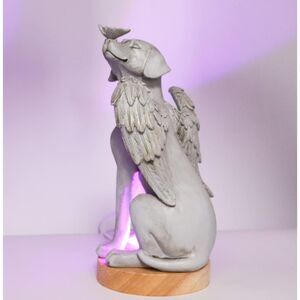 8.3" Angel Dog Garden Statue with Light Base & Remote Inside Outside