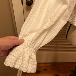 Long detailed fabric sleeves with elastic at wrist and bell cuff. These sleeves surely are not plain