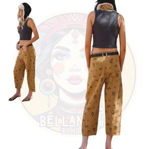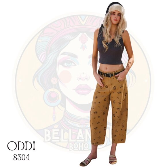 8304 ODDI Caramel Brown Cowboy Western Cropped Cotton Pants