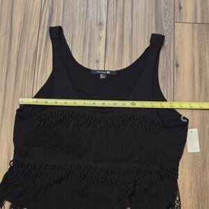831. NWT Forever 21 Black Fringe Tassel Crop Tank Top Size Small NEW