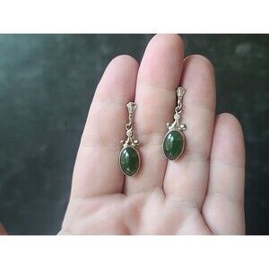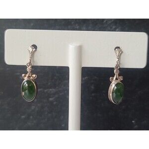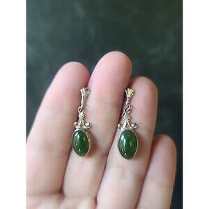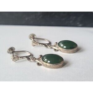 These are a vintage pair of 835 silver nephrite oval shaped dangling screwback earrings.