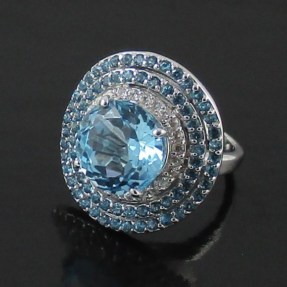8.35ct Blue Topaz & White Topaz Sterling Silver Ring.