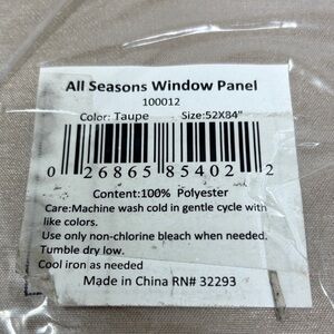 Elegant 84 inch window panel in a soft taupe color. Perfect for any room. 100% Polyester, Care machine Wash cold # RN 32293