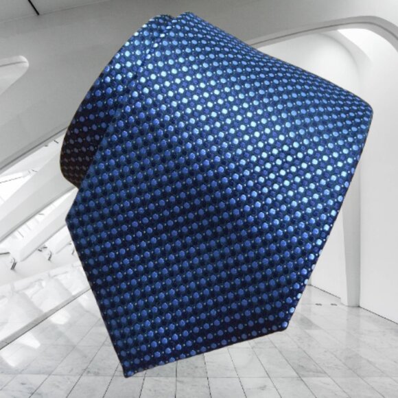 $840 New BRIONI Navy Aqua Blue Geometric Medallion Handmade Italy Silk Neck Tie