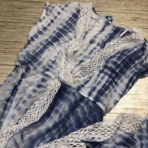843 Blue Island lace trim maxi tie dye cover up dress BLUE sz XS