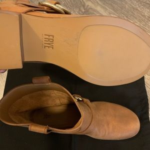 This gorgeous pair of 8.5 Frye Ricki Ring Strap booties in cognac are brand new and never worn! They are rare and discontinued, sold out everywhere. I cannot return as I don’t have the receipt, and I am hoping that they go to a happy fashionista! Includes boot box, boot bag, and authenticity and information cards.