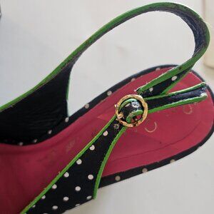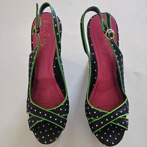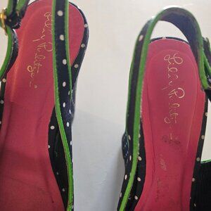 8.5 Lilly Pulitzer Peep Toe Wedge Slingback Sandals Lily Navy Blue Polka…