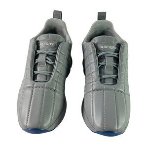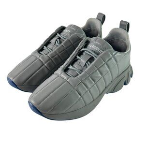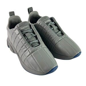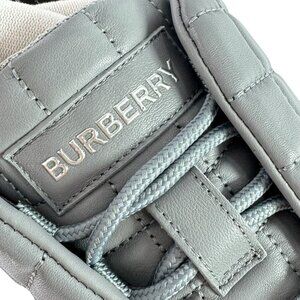 $850 BURBERRY Grey Leather Auxburton Quilted Women Sneakers Made in Italy 39/9US