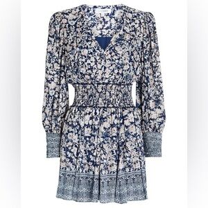 855 Intermix Lana Floral Smocked Mini Dress Size 2 Color Blue