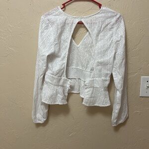 857. Sinsay white knit long sleeve open back size medium