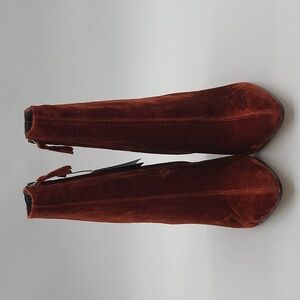 ZARA Burgundy Velvet Ankle Boots | Chunky Heel | Size 5.5NWT