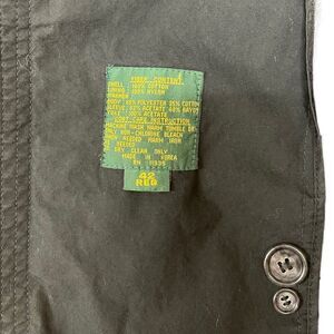 A perfect trench coat in black. The inner layer is removable. It can be a spring, fall, and winter coat. It is not new, but in a great condition. Size: 42R