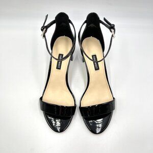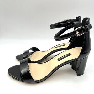 8.5W 8.5 WIDE WIDTH Nine West Pruce 3 Black Patent Block Heels Sandals Shoes