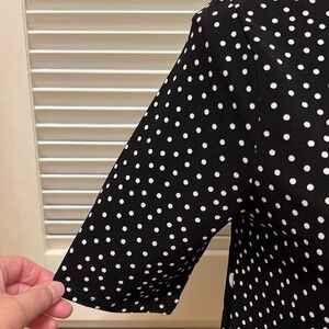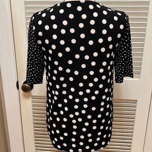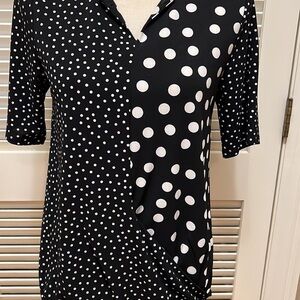 86. Tahari Blouse in Multi-Media Print Black & White Polka-Dots, Size Small