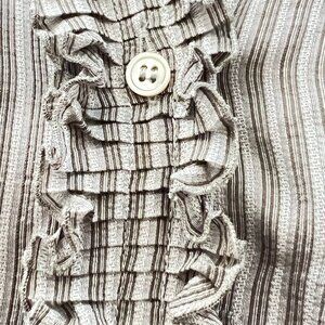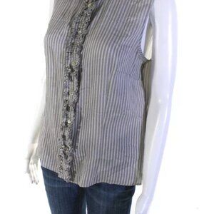 Women's Button Front Striped Ruffled Trim Sleeveless Tops