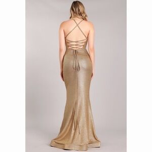 ๐ Metallic fabric dress, form fitting. Halter sexy corset back dress. Dress has a little stretch